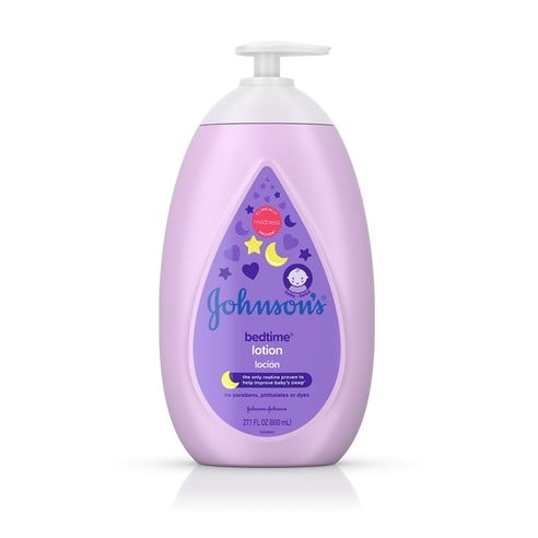 Our Bedtime® lotion fragrance blends a trio of florals: lily of the valley, jasmine blossom and pink rose petals, which are woven by watery ivy and juicy apricot. Fresh top notes rest on a calming and comforting blanket of precious amber, soft musks and an exclusive warm milk note. This combination provides that distinctive calming and soothing baby identity.