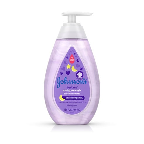 Our Bedtime® moisture wash fragrance blends a trio of florals: lily of the valley, jasmine blossom and pink rose petals, which are woven by watery ivy and juicy apricot. Fresh top notes rest on a calming and comforting blanket of precious amber, soft musks and an exclusive warm milk note. This combination provides that distinctive calming and soothing baby identity.